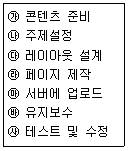 다음 웹디자인 프로세스를 순서대로 바르게 나열한 것은?(일부 컴퓨터에서 보기의 특수문자가 정상적으로 보이지 않아고 괄호뒤에 다시 표기하여 둡니다.)