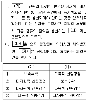 산림경영의 개념에 대한 설명 중 (가), (나)에 들어갈 말을 바르게 연결한 것은?