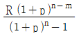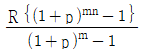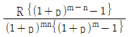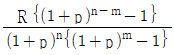 제1회 수입은 m년 후에, 제2회부터는 n년마다 R원씩 영구히 얻을 수 있는 이자의 전가합계식은? (단, p는 연이율이다)