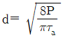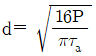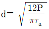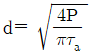 금형 조립 시 사용되는 핀을 설계할 때, 전단응력에 대해 필요한 핀의 지름을 구하는 식으로 옳은 것은? (단, P는 하중, τa 는 허용 전단 응력이다.)