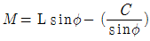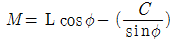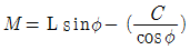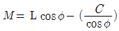 앵귤러핀에 의하여 언더컷을 처리할 때, 슬라이드 코어의 운동량(M)을 구하는 관계식은?