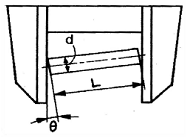버니어 캘리퍼스로 지름 20㎜, 길이 80㎜의 환봉을 측정하는데 그림과 같이 θ=1° 의 기울기가 발생하였을 경우, 나타나는 측정 오차는 약 몇 ㎜ 인가?