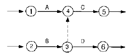 네트워크 공정관리에서 작업 B에 종속되어 있는 공사는?