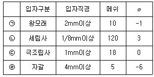 입도분석 시 입자크기를 측정하는 원리는 입자의 크기에 따라 다르며 입자의 크기는 자갈과 모래 그리고 펄로 크게 나눌 수 있다. 다음 중 입도 등급위 구분이 틀린 것은?