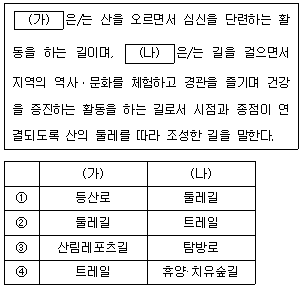 「산림문화ㆍ휴양에 관한 법률」상 숲길의 종류 중 다음 (가), (나)에 들어갈 용어로 옳은 것은?
