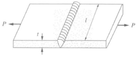 다음 그림과 같은 용접의 맞대기 이음에서 하중을 P, 용접부의 길이를 l, 판 두께를 t라고 하면 용접부의 인장응력을 구하는 식은?