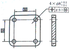 다음과 같이 상호 관련된 구멍 4개의 치수 및 위치 허용 공차에 대한 설명으로 틀린 것은?