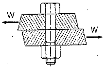 아래 그림과 같이 1000 kgf의 전단력이 직경 20mm의 볼트에 작용하고 있을 때, 볼트에 생기는 전단응력은 약 얼마인가?