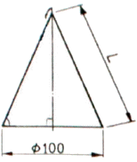 그림과 같은 원뿔을 전개하였을 때 전개도의 중심각이 120°가 되려면 L의 치수는 얼마인가? (단, 원뿔 밑면의 지름은 100mm이다.)(오류 신고가 접수된 문제입니다. 반드시 정답과 해설을 확인하시기 바랍니다.)