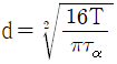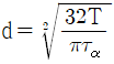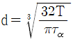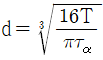중공축이 비틀림 모멘트(T)를 받을 때 축의 지름(d)을 구하는 식으로 옳은 것은? (단, 허용전단응력은 τα이다.)