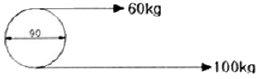 그림과 같이 직경이 90cm인 풀 리가 180rpm으로 회전할 때 발생하는 전달마력[PS]은?