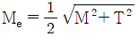 전동축은 비틀림모멘트 T와 굽힘모멘트(M)를 동시에 받는다. 이 때의 상담굽힘 모멘트 Me는?