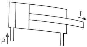 다음 편 로드 실린더에서 F=200N의 힘을 발생시키자면 최소 얼마의 유압이 필요한가? (단, 실린더의 내경의 단면적은 0.2m2이다.)