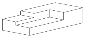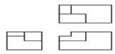 제 3각 정투상법으로 이래 입체도의 정면도, 평면도, 좌측면도를 가장 적합하게 나타낸 것은?