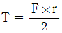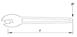 다음 그림에서 스페너를 이용하여 볼트를 조이려고 한다. 이때 발생하는 토크(T)를 구하는 식으로 옳은 것은?