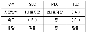 플래시 메모리는 저장방식에 따라 SLC, MLC, TLC로 나뉜다. 괄호 안에 알맞은 것은?