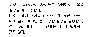 다음 중 Windows 10에서 Windows Update 설정과 관련하여 보기에서 설명하고 있는 것은?