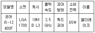 다음과 같은 성능을 갖는 CPU에 대한 설명으로 바르지 못한 것은?