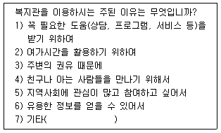 다음과 같이 복지관 이용 동기를 측정하였다면 이는 어떤 수준의 측정인가?
