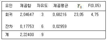 다음 분산분석표에 대응하는 통계적 모형으로 옳은 것은?