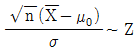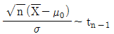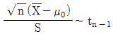 임의표본 X1, ……, Xn(n < 30)이 모평균 μ와 표준편차 σ가 알려져 있지 않는 정규모집단에서 추출되었을 때 모평균이 μ0인지를 검정하고자 한다. 가설을 검정하기 위한 검정통계량과 분포로 옳은 것은? (단, Z는 표준정규확률변수이며, tn은자유도가 n인 t분포를 의미 한다.)