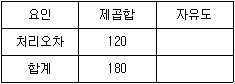 반응 온도에 대한 처리 인자 수를 4개의 수준으로 하고, 각 온도에서 3회씩 반복실험하여 전체 12회의 랜덤 실험을 하였다. 다음 미완성된 일원배치 분산분석표를 이용하여 오차의 자유도와, 처리인자의 평균제곱합을 구하면?