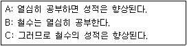 다음에서 설명하는 과학적 접근방법(A→B→C)은 무엇인가?