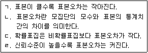 표본오차에 관한 옳은 설명을 모두 고른 것은?