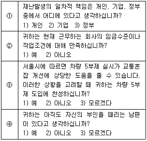 질문지 구성 문항 중 가장 적절한 질문형식은?