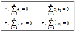 단순선형회귀모형 yi = α + βxi + εi(i = 1, 2, …, )에서 잔차