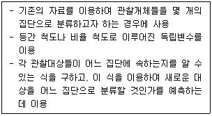 다음의 내용들이 설명하는 통계적 분석방법은?