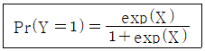 반응변수 Y가 (0, 1)중 하나를 택하는 이분형일 때, P개의 설명변수 x의 선형결합식을 Y가 1일 확률 (Pr(Y=1))의 범위를 벗어나지 않도록 다음과 같이 변환한 식을 사용하는 회귀분석은?