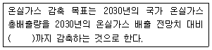 다음은 저탄소 녹색성장 기본법령상 정부가 범지구적인 온실가스 감축에 적극 대응하고 저탄소 녹색성장을 효율적ㆍ체계적으로 추진하기 위한 감축목표이다. ( )안에 가장 적합한 것은?(관련 규정 개정전 문제로 여기서는 기존 정답인 4번을 누르면 정답 처리됩니다. 자세한 내용은 해설을 참고하세요.)
