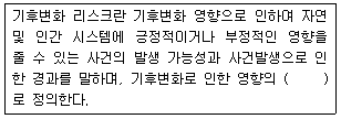 다음은 우리나라 제2차 국가기후변화 적응대책에서 기후변화 리스크에 대한 정의이다. ( )안에 가장 적합한 것은?