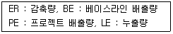 CDM 프로젝트 활동으로 인한 온실가스 감축량을 산정하고자 한다. 다음 인자를 이용한 감축량 산정식을 표현한 것으로 옳은 것은?
