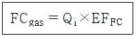 온실가스 배출권거래제의 배출량 보고 및 인증에 관한 지침에 따라 Tier 1 산정방법론으로 반도체 제조공정의 FC 가스 배출량을 구하고자 한다. 이 때 활용되는 다음 식에서 Qi의 의미는? (단, FCgas는 FC 가스의 배출량, EFFC는 배출계수임)