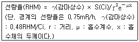 Ir-192 30Ci의 방사선 동위원소를 사용하여 10mm두께의 강판 용접부를 차폐치를 사용하지 않고 촬영하려고 할 때 다음 계산식과 조건을 이용하여 방사선관리 구역을 설정하면?