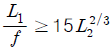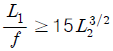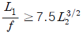 주강품의 방사선투과 시험방법(KS D 0227)에 의해 주강품의 시험시 A급 영상질의 원칙적인 촬영배치로 옳은 것은? (단, L1은 선원과 시험체 간 거리, f는 선원의 치수, L2는 시험체의 선원쪽 표면과 필름 간 거리이다.)