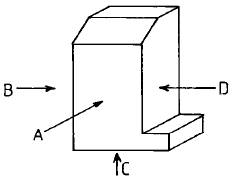 다음 그림에서 A방향의 투상면이 정면도 일때 B,C,D를 바르게 나타낸 것은?