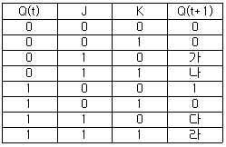 다음 JK플립플롭의 특성표에서 가, 나, 다, 라에 들어갈 항목으로 옳은 것은?