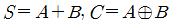 반가산기 회로에서 두 입력이 A, B라고 하면, 합, S와 자리올림 C의 논리식은?