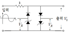 그림과 같은 회로의 입력측에 정현파를 가할 때 출력측에 나오는 파형은 어떻게 되는가?(단,