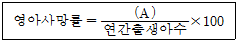 다음의 영아 사망률 계산식에서 (A)에 알맞은 것은?