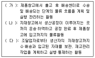 (가) 판매물류, (나) 생산물류, (다) 조달물류