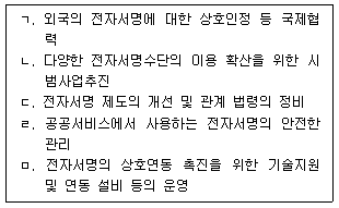 다음 글상자에서 전자서명의 이용 촉진을 위한 지원 (2020. 6. 9 전부개정, 2021. 6. 10. 시행)에 대한 설명이 가장 올바르게 짝지어진 것은?