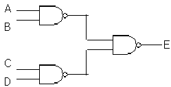 NAND게이트 3개로 구성된 다음 논리회로의 출력값 E는?