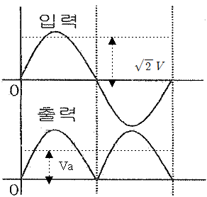 그림은 정류회로의 전압파형이다. 입력 전압은 사인파로 실효값이 100[V]일 때 출력파형의 평균값 Va[V]는?