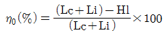 가연성 물질의 연소 시 연소효율은 완전연소량에 비하여 실제 연소되는 양의 백분율로 표시한다. 관계식을 옳게 나타낸 것은? (단, η0=연소효율(%), Hl=저위발열량, Lc=미연소손실, Li=불완전연소 손실)