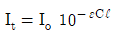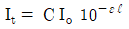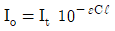 자외선/가시선 분광법에서 램버어트 비어의 법칙을 올바르게 나타내는 식은? (단, Io = 입사강도, It = 투과강도, ℓ = 셀의 두께, ε = 상수, C = 농도)
