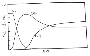 다음 그래프는 쓰레기 매립지에서 발생되는 가스의 성상이 시간에 따라 변하는 과정을 보이고 있다. 곡선(가)과 (나)에 해당하는 가스는?